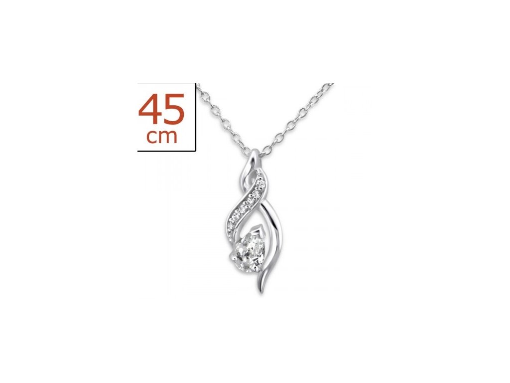 Stříbrný dámský náhrdelník Jukateko TEAR je ozdobený přívěškem moderního tvaru, který zdobý 6 menších zirkonů a jeden větší. Výrobek je také opatřen ochranou povrchovou úpravou, která jej chrání proti černání a poškrábání. Součástí balení je také řetízek o délce 45 cm.